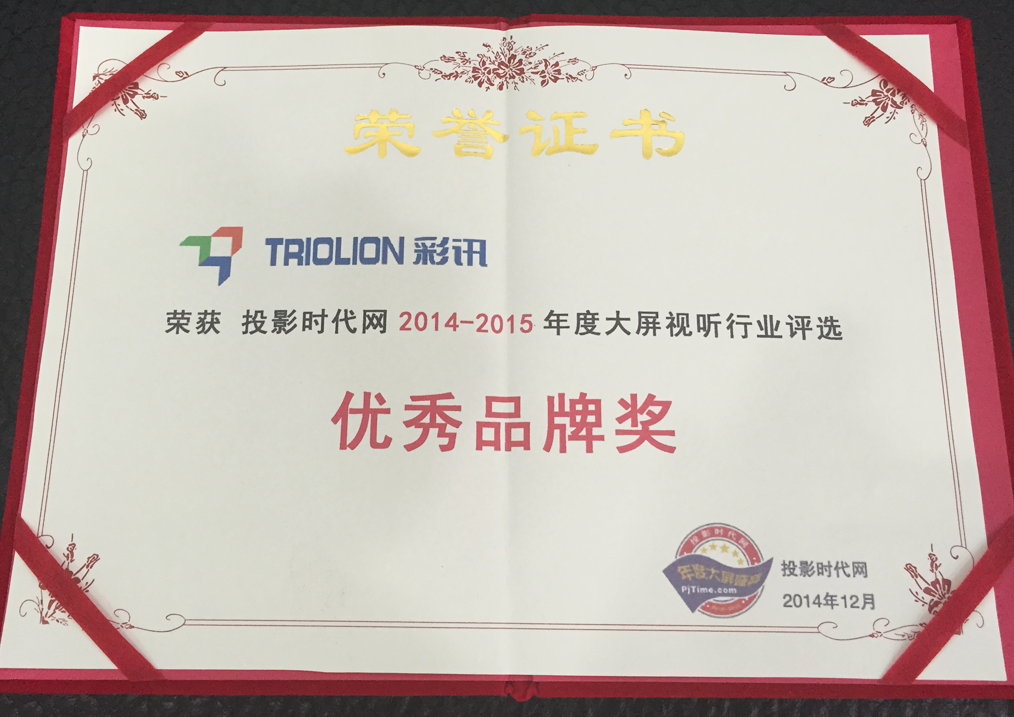 投影時(shí)代網(wǎng)年度優(yōu)秀品牌獎(jiǎng)證書(shū)