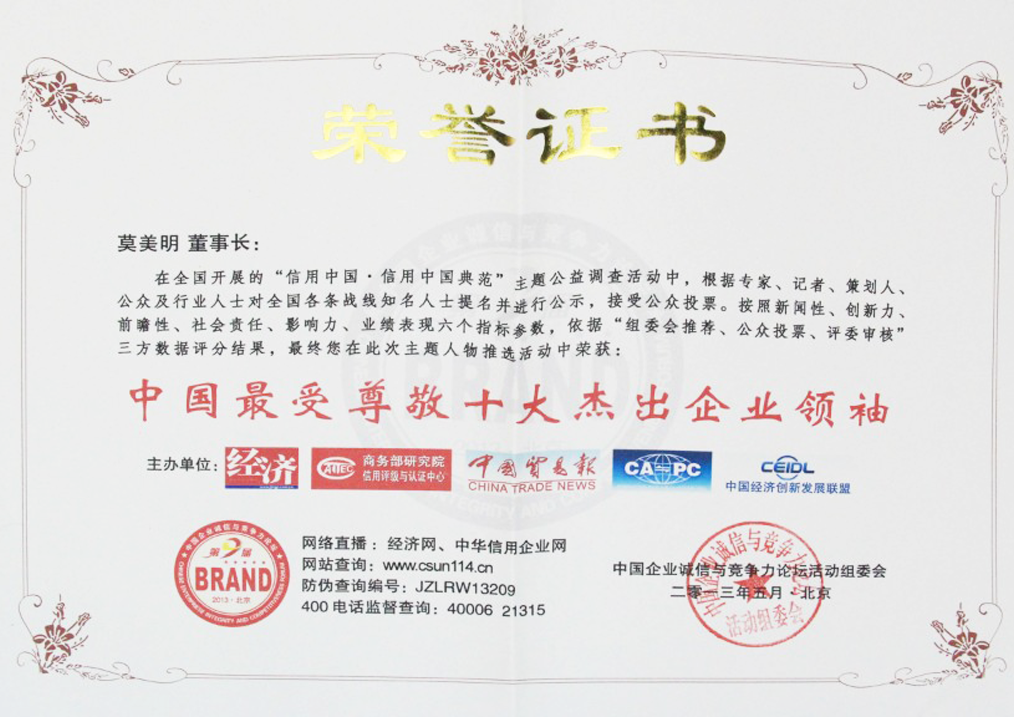 中國(guó)最受尊敬十大杰出企業(yè)領(lǐng)袖